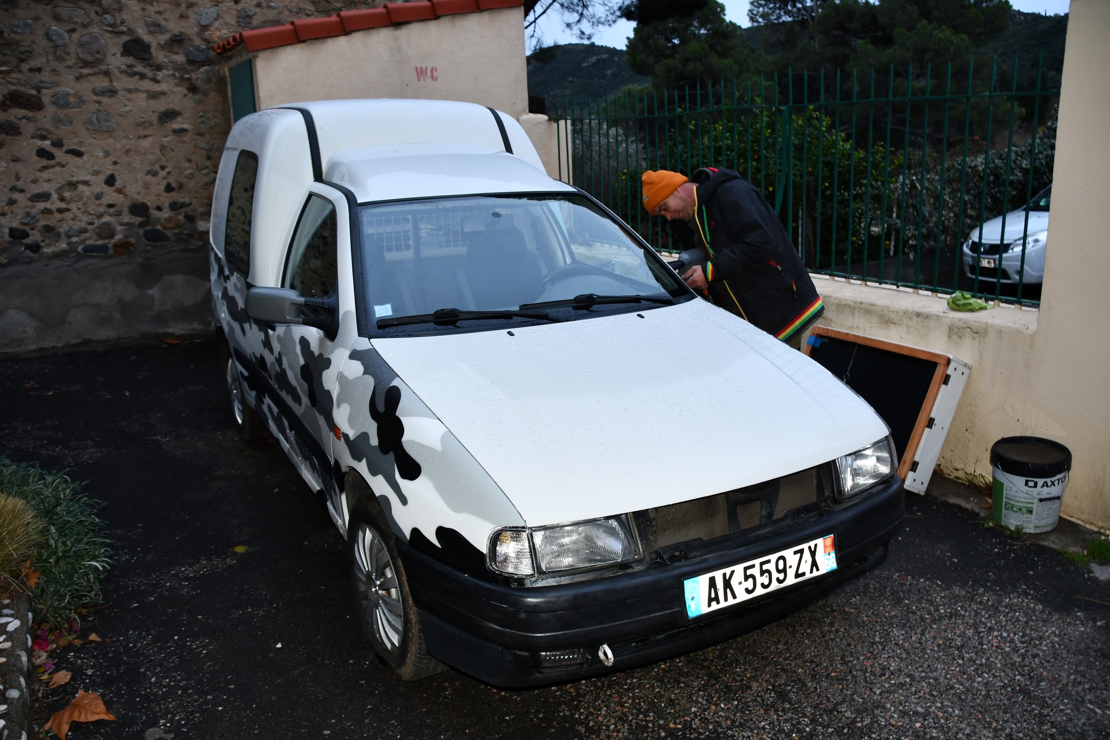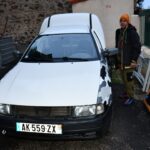Dans la cour de l’ancienne école, Jer se régale de bichonner sa nouvelle voiture. En tant que mécano, il la passe au peigne fin et vérifie chaque réglage, quant à la peinture style Sahara, il a pu compter sur le talent de Léo pour finir le travail.